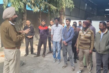 मोगा के फोकल प्वाइंट स्थित मार्शल इंडस्ट्रीज में कर्मचारियों को ट्रैफिक नियमों,